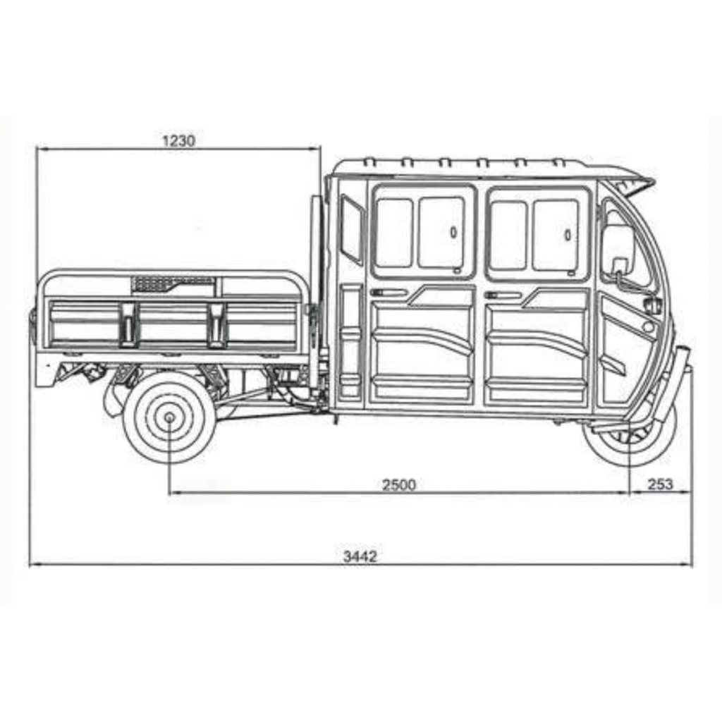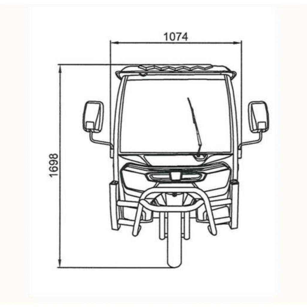 Fahrzeugmaße: Länge 3442 mm, Breite 1074 mm, Höhe 1698 mm, Radstand 2500 mm – Kompakte Abmessungen, die maximale Wendigkeit bieten.